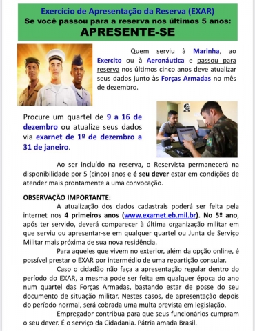 ATENÇÃO RESERVISTAS